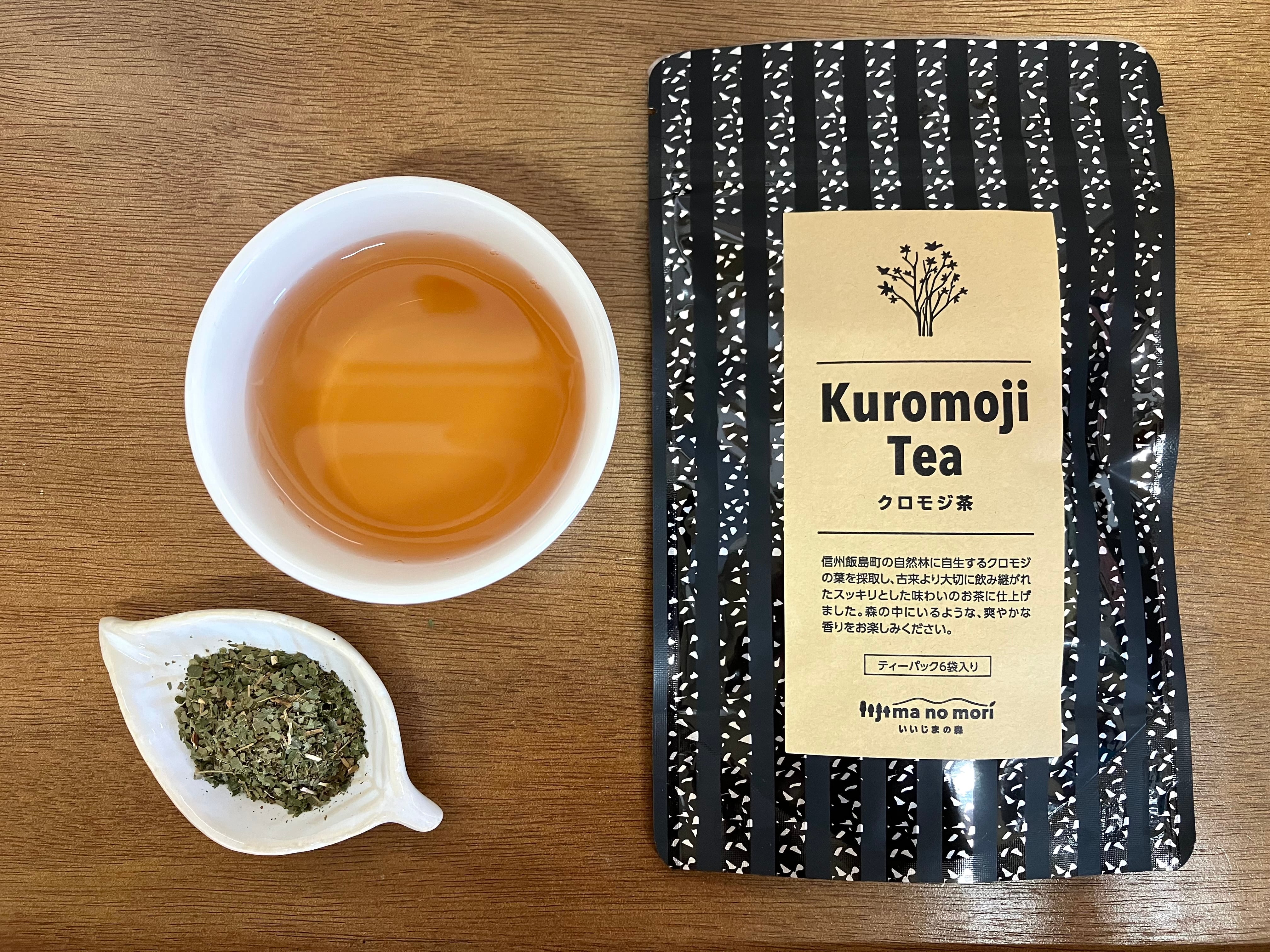 飯島町では、ボランティア団体『いいじま森の会』が、傘山の環境保全、登山道整備などの活動をしながら、このクロモジを使った商品開発も行っていて、その1つが『クロモジ茶』なのです。